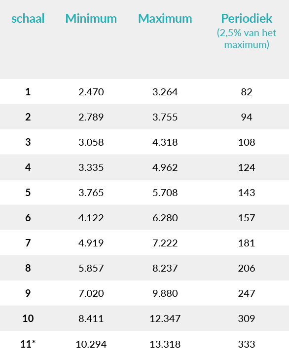 * Salarisschaal 11 is alleen bestemd voor profiel leidinggevende G.