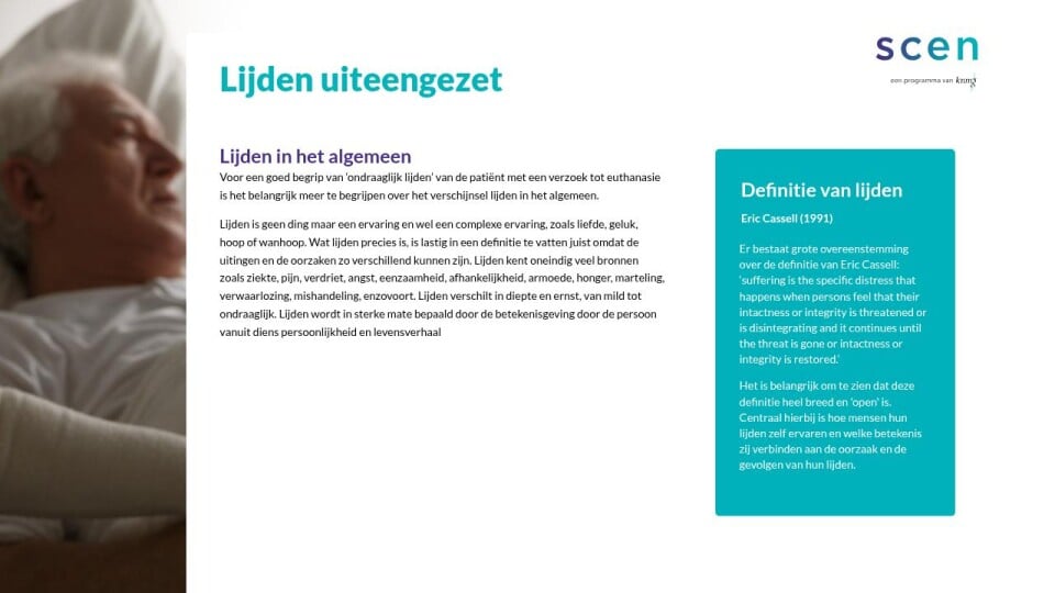 Voor een goed begrip van ‘ondraaglijk lijden’ van de patiënt met een verzoek tot euthanasie is het belangrijk meer te begrijpen over het verschijnsel lijden in het algemeen.