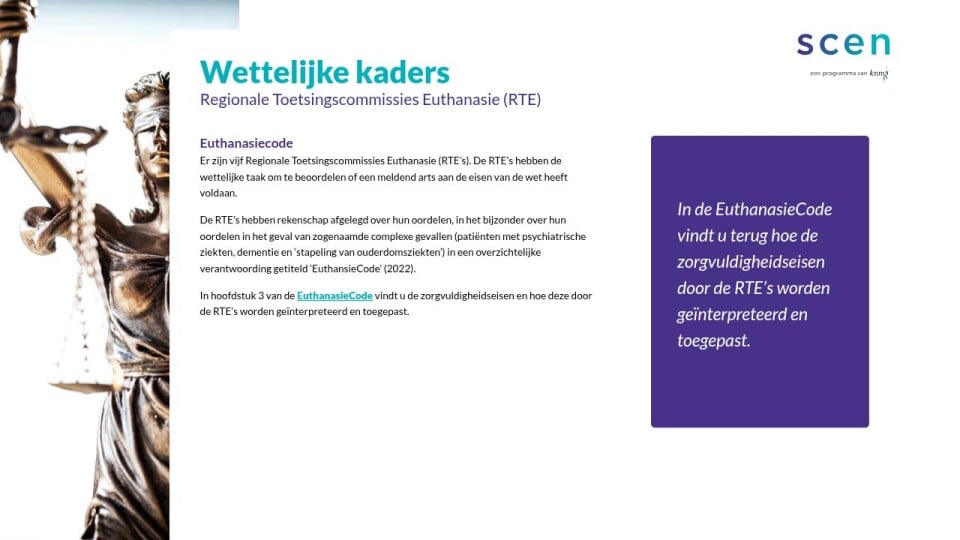 In de EuthanasieCode vindt u terug hoe de zorgvuldigheidseisen door de RTE’s worden geïnterpreteerd en toegepast.